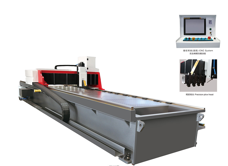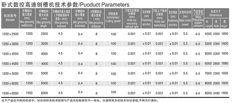 機床性能及特點: 創槽機機座、橫梁均采用框架結構設計,機床整體剛性好,堅固耐用。 嚴格按照機床加工工藝制作,采用電爐回火,消除焊接應力減少設備變形。 JDV刨槽機加工件采用液壓夾緊系統固定,開速度快并保證強力緊。液壓系統增設蓄能器補償電機間式工作節約能源,控制油溫。 JDV創槽機使用四個刀加工“V”槽,因此切削量分配均勻減少加工件的變形。并且選配微量冷卻系統,延長刀具的使用壽命,降低生產費用 使用本刨槽機只需輸入加工尺寸即可完成。根據操作人員和材質的不同,可用旋紐調整加工速度,便于操作人員操作。 采用伺服電機和感應器保證操作人員的安全。 設備發生異常時顯示屏上出現報警信息容易維修。 使用本刨槽機加工時只在加工件的投放和取出時需要人力,因此可節省人工。